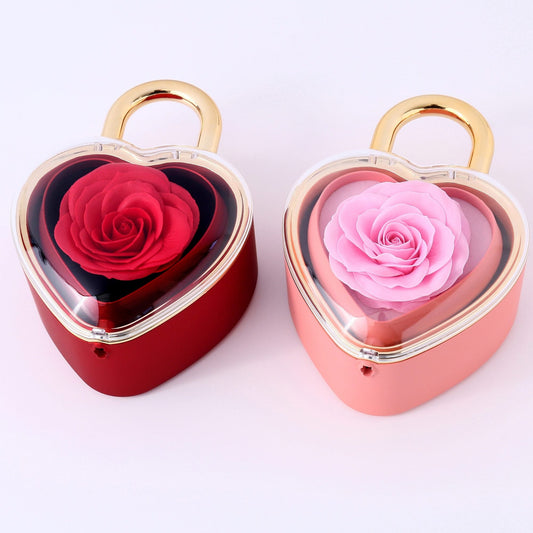 Heartlock Rose Box - With Double Heart Engraved Necklace