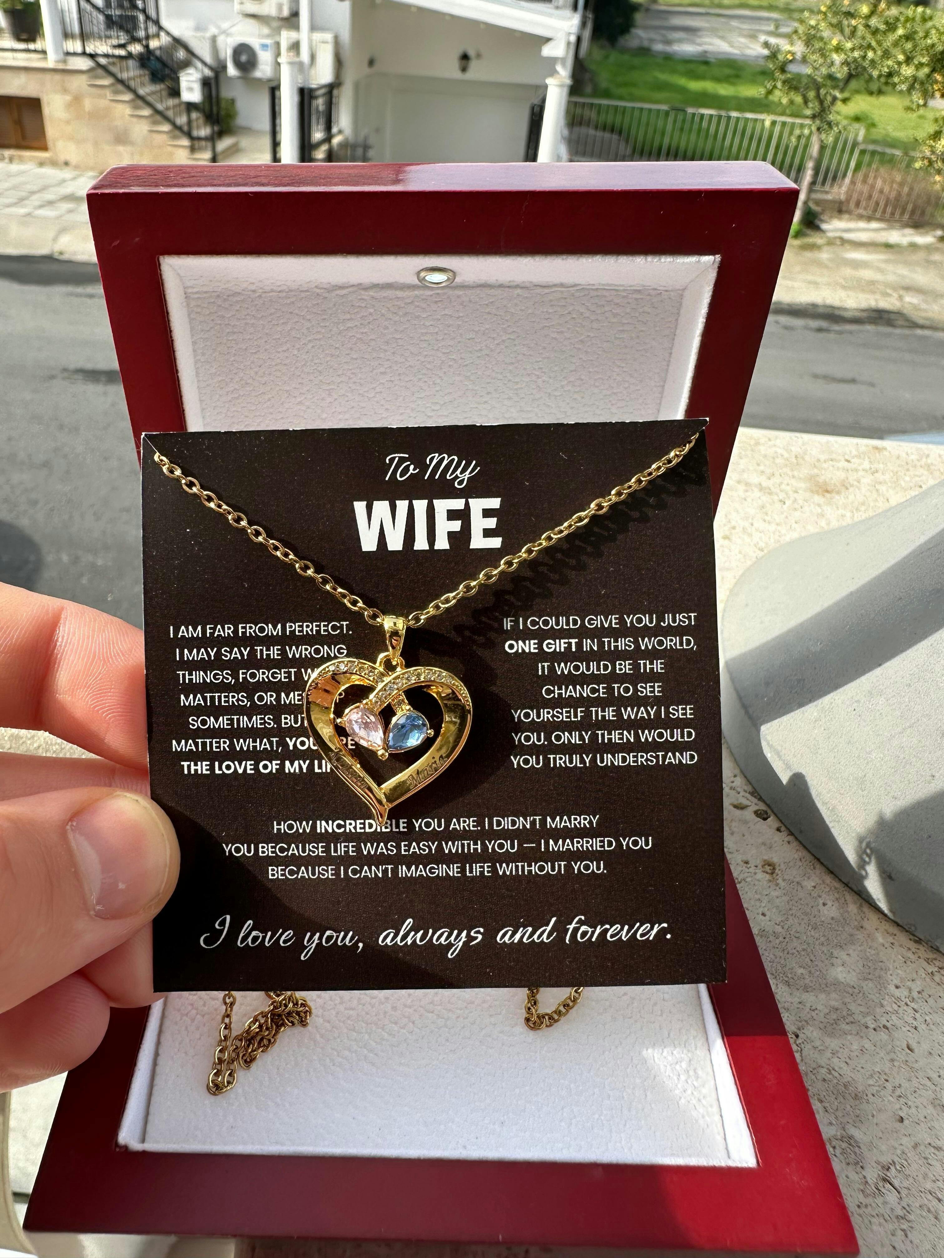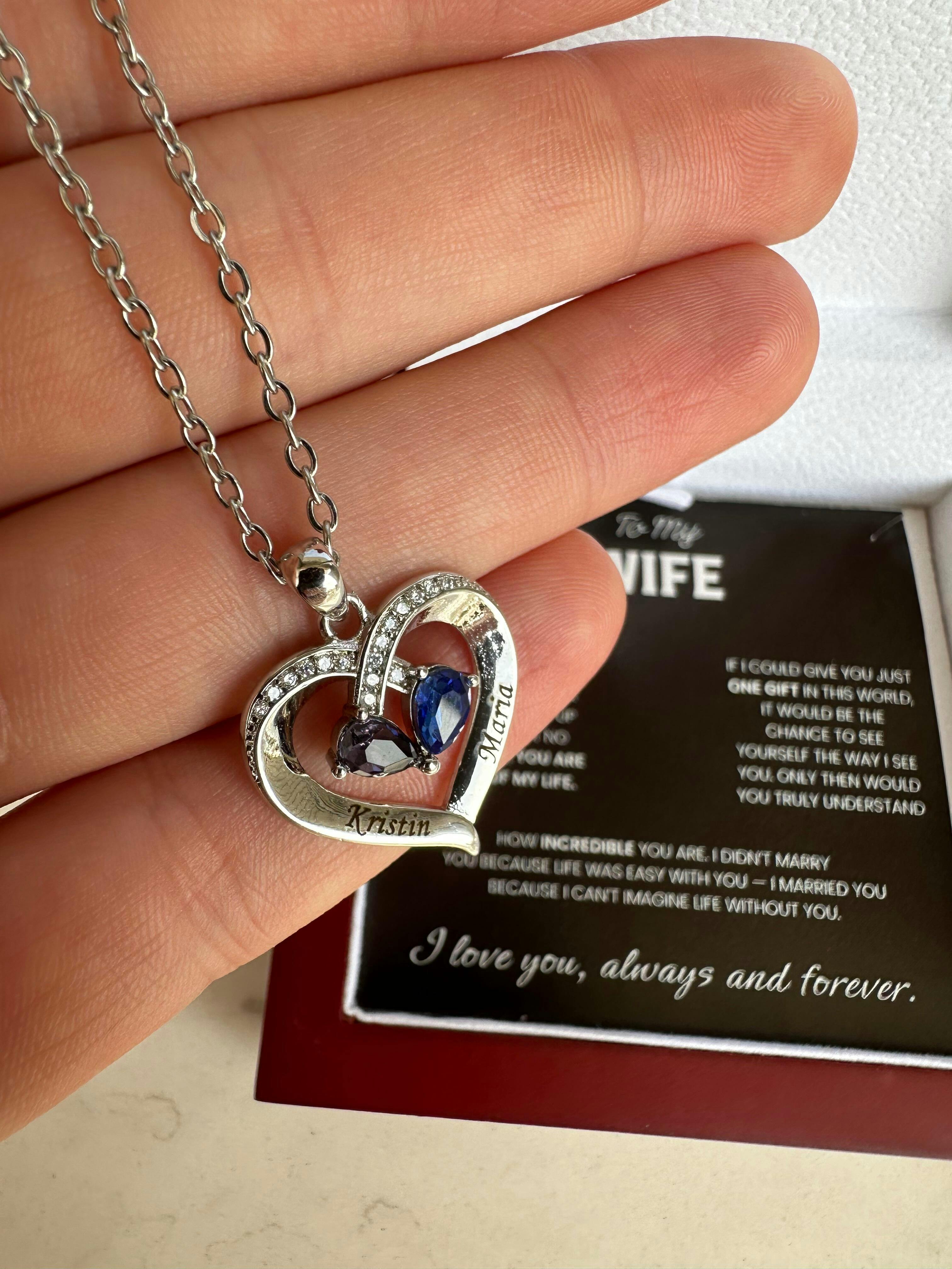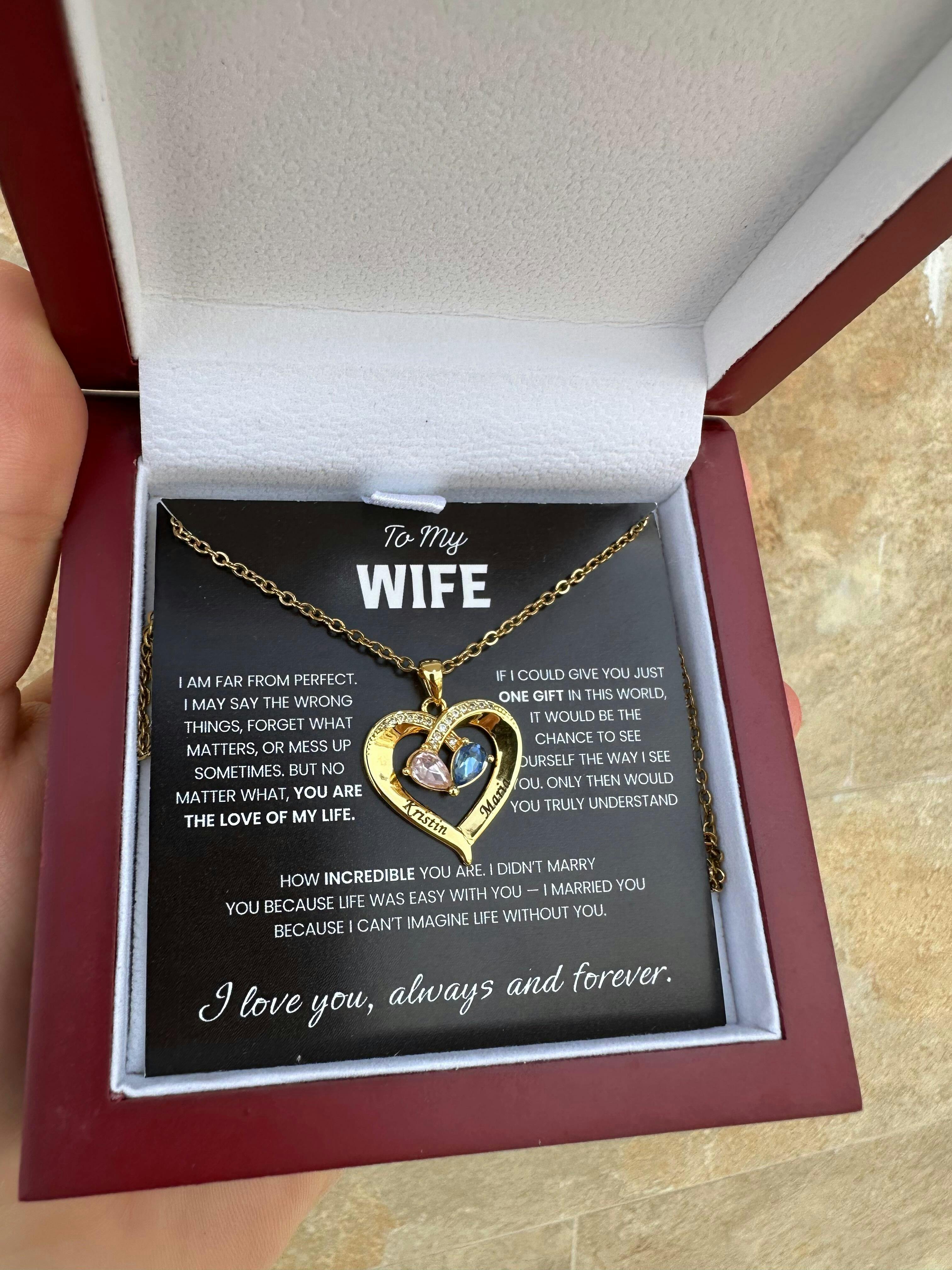 To my Wife Birthstone Heart Necklace